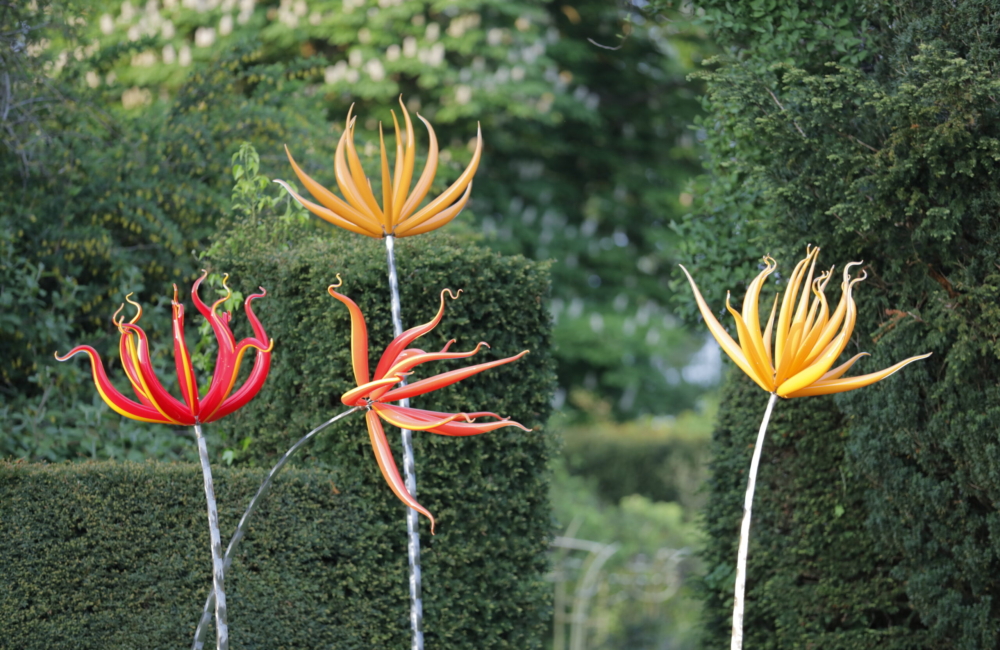 Fresh Air Sculpture gathers over 130 contemporary pieces of outside sculpture together in this tranquil setting, many of which have been created specifically for the gardens. The excitement of Fresh Air Sculpture is the huge diversity of materials exploring a variety of media: from stone to textiles, ceramic to glass, sound to video, mosaic to metals, rubber to resin. Monumental pieces sit alongside smaller works to suit every size of garden or outdoor space.